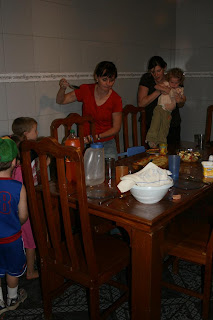 Last Sunday night we went to an American couples house for dinner. We had a Mexican chicken casserole and brownies for dessert. It was the perfect meal to end the week before Weight Watchers. It was so delicious and the kids had a great time too. Oh I lost 2 lbs on Weight Watchers from Monday until Thursday at lunch and then for supper I couldnt take it any more. We had pizza and I ate like 6 pieces and ate all day Friday and whatever I wanted yesterday. Lets just say that the Weight Watchers did not help me change my bad eating habits. But here are some pictures form the wonderful supper with some other Americans, oh so nice to hear English speaking people.